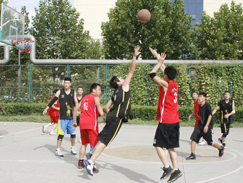 公司篮球场上横幅高悬,一派喜庆欢快的场面,为打好比赛,各参赛队都作了精心准备,选拔出优秀选手积极参赛。此次职工篮球比赛分A、B两支小组,第一阶段为各小组循环赛,通过比赛产生前三名的队伍参加下一阶段比赛,然后进入交叉淘汰赛,最终产生进入决赛的三支球队。9月12日下午,随着裁判员的哨响,首场赛事在钢管队对仓储队、动力队对后勤队之间进行,四支球队势均力敌,比拼异常激烈,最终,钢管队、动力队赢得了本次篮球赛的首场胜利。比赛现场,篮球队员个个精神振奋,你争我抢,各不相让,漂亮的抢断,完美的过人,惊准的投篮,默契的配合,充分发挥出了各自的技战术水平。场上场下气氛高潮迭起,掌声、欢呼声不断,啦啦队为各自队员呐喊助威,浓厚的团队精神营造了富有激情的比赛氛围;比赛期间,各球队人员奋力拼搏,齐心协力,本着“友谊第一、比赛第二、热情参与、共同提高”的原则,尊重裁判、尊重对手,赛出了水平、赛出了成绩、赛出了风格、赛出了友谊,实现了比赛成绩和精神文明双丰收!