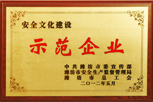 近日,潍坊市委宣传部、安全生产监督管理局、总工会联合下发《关于公布2011年度市级安全文化建设示范企业名单的通知》,我公司被命名为2011年度市级安全文化建设示范企业。