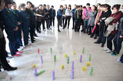 当日上午8时,还没到活动时间,四楼活动室内却早早的聚满了前来参加活动的女职工,使得整个活动室热闹非凡。游戏娱乐活动设置了1分钟跳绳、蒙眼闯关、欢乐移豆、球之星和有奖乐套圈等趣味十足的小游戏,每个游戏都融知识性、趣味性和娱乐性为一体,吸引了女职工们的积极响应,大家纷纷踊跃报名参加。在一分钟跳绳的活动中,选手们强劲的实力感染着现场,围观的职工们则为她们加油助威,气氛被一次次地推向高潮,欢声笑语不断。特别是在球之星游戏中,选手使足吸力,用吸管将一个个乒乓球从一处吸移到另一处,那一个个怪异的姿势引起了全场一阵阵地欢笑。而在蒙眼闯关的游戏中,一个选手用眼罩把眼蒙上,另一个选手用语言帮助其选手以最快的速度完成两人配合所担任的闯关任务,充分考验了同事间的默契。