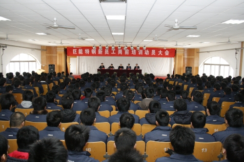 最后,特钢公司董事长张明荣对此次岗前培训工作作了重要指示。他首先向新员工的加盟表示欢迎,指出特钢经过几年的发展取得了辉煌的成绩,和谐的人性化管理理念、优秀的企业文化氛围,使广大职工感受到了特钢这个大家庭的温暖。激励新员工要在以后的工作中踏实努力,实现自己的人生价值,把在特钢公司工作当作是一种骄傲和满足。他还要求新员工尽快调整心态,准确定位,去除浮躁心理,提高自己的综合素质能力,做一名合格的特钢员工。